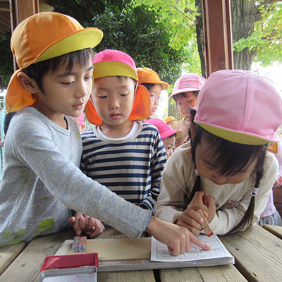3・4・5才児が一緒に過ごす時間を設けています。『伝承遊び』、スタンプラリー後“今日の宝もの”を探す『宝探し』、『レストランごっこ』や『散歩』を楽しみます。おにぎりパーティーではおにぎり、手作りおやつではクッキーやチーズパイを一緒に作りながら伝授しています。