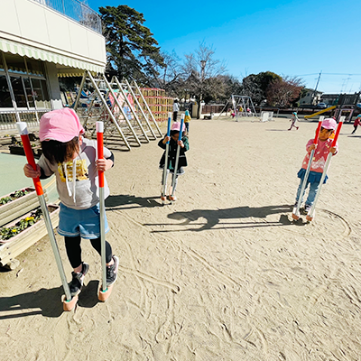 | 9:30~ | 登園確認・あそび 子どもの主体的な活動 ◆ごっこあそび ◆表現あそび(リズム、せいさく) ◆戸外あそび(散歩など) ◆体育あそび ◆グループ活動 ◆かたづけ |