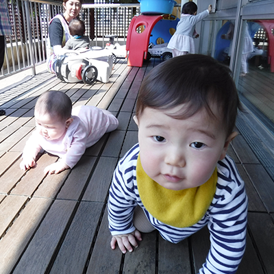 | 10:00~ | あそび ◆はいはい、歩行あそび ◆表現あそび(リズム) ◆戸外あそび(散歩、探索活動) |